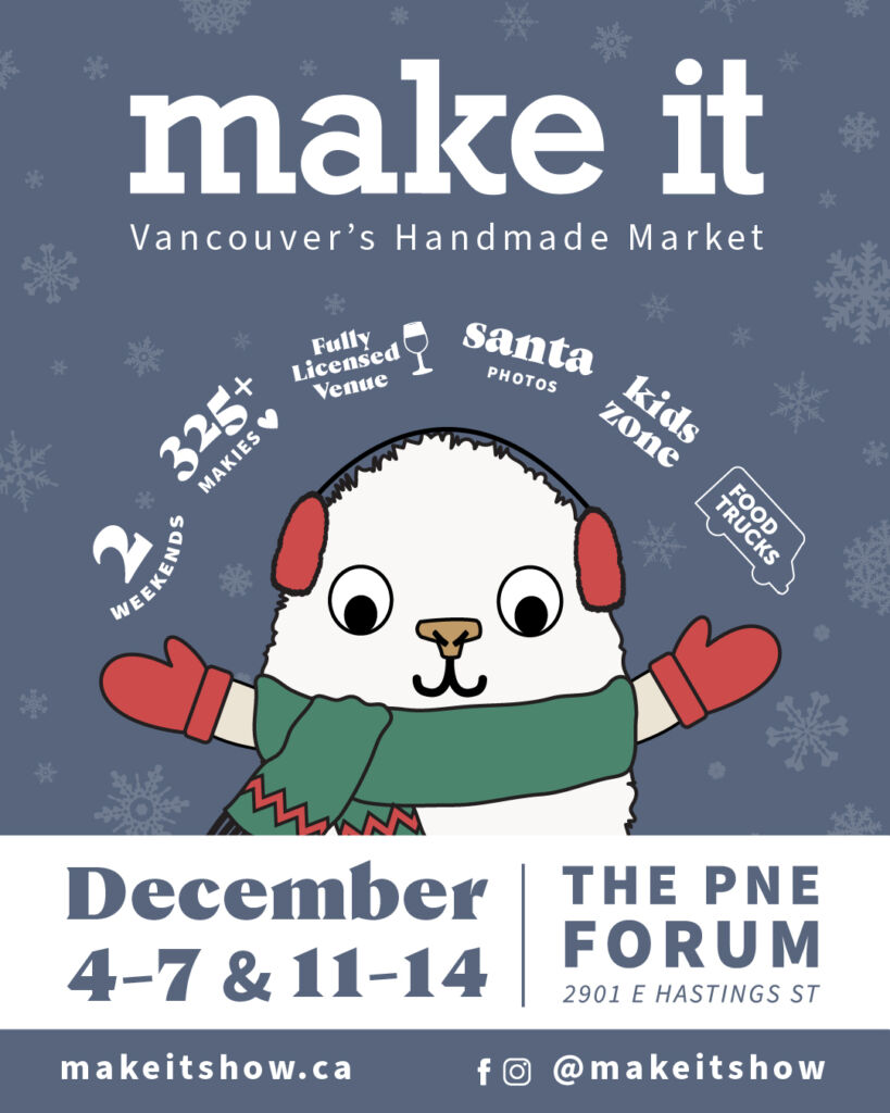 The Make It Show returns this holiday season with two weekends at the PNE Forum—Dec 4-7 and Dec 11 to 14 and we’re so excited to be a Makie! The show will feature over 300 amazing local brands and makers. This is an awesome spot to get all your holiday shopping done while supporting creative entrepreneurs. There will also be food trucks, a lively festive atmosphere, and holiday fun to be had by all. Make sure to follow @makeitshow for a chance to win prizes leading up to the show. Can’t wait to see you there! makeitshow.ca/vancouver #proudmakie #makeitvancouver #makeitshow